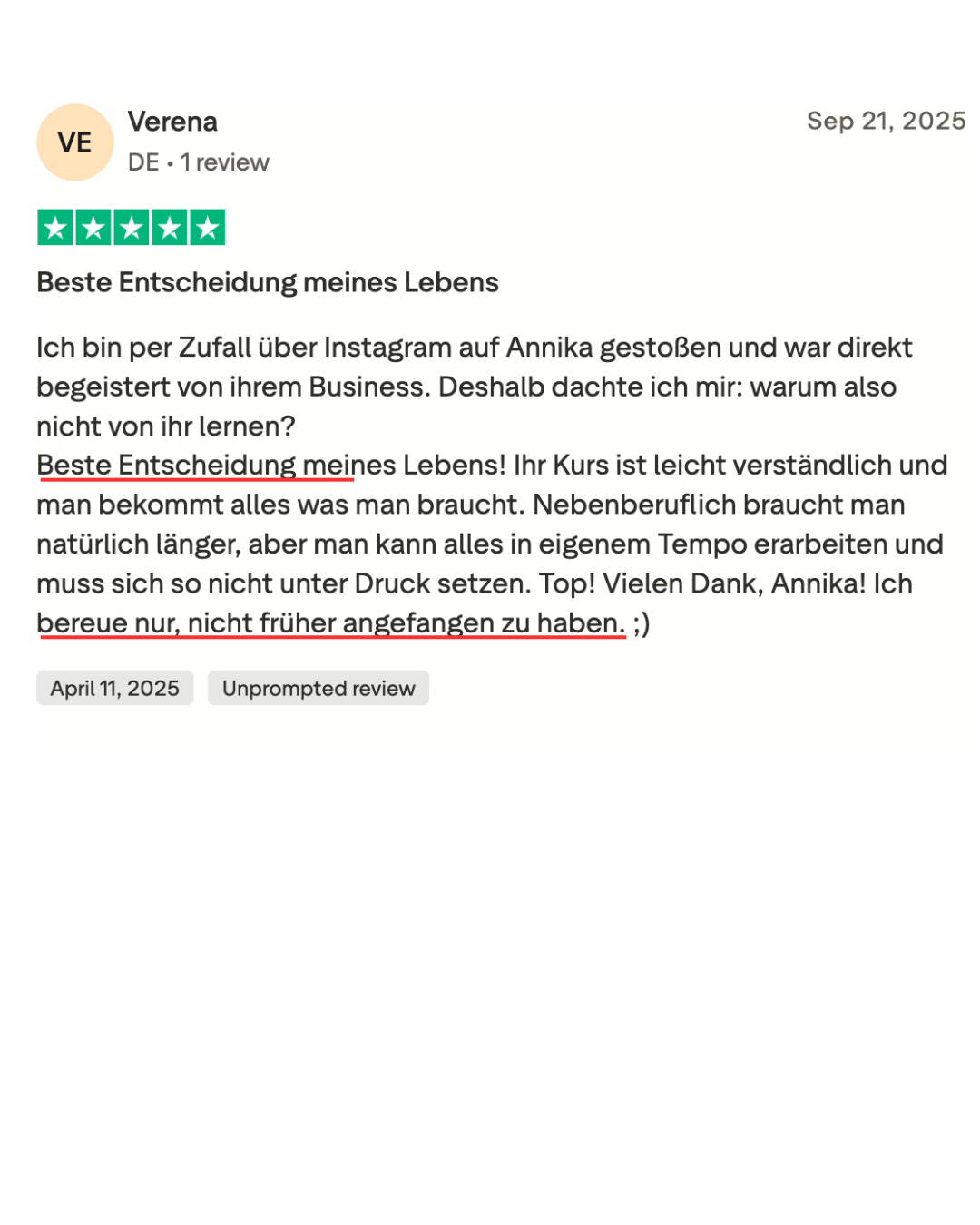 ✅ Direkte Unterstützung von Annika & Pablo